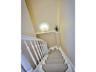 In dieser schönen 3-Zimmer Obergeschoss-Ferienwohnung für 1-4 Pers. über 2 Ebenen, mit Wohnraum, TV, Stereoanlage, Zugang zum Süd-Balkon, Küchenzeile mit 4er Cerankochfeld, Mikrowelle, eine Nescafé Dolce Gusto Kaffee-Kapselmaschine und eine Filter Kaffeemaschine, Esstischgruppe; Duschbad; ein Schlafraum...