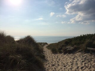 Bäcker in 100 m Entfernung, Einkaufsmöglichkeiten in ca. 650 m, Restaurant in ca. 650 m. Zum Strand sind es ca. 700m