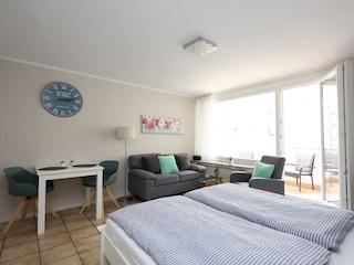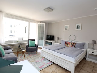 Nur wenige Meter von der Fußgängerzone entfernt. Viele Restaurants und Einkaufmöglichkeiten direkt in der Nähe. Zum Strand sind es ca. 200m und zum Bahnhof und ZOB sind es nur ca. 600m.