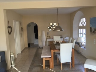 Das großzügige Wohnzimmer verfügt über Flachbildschirm (Kabel-TV) und separaten Essbereich. In der kälteren Jahreszeit sorgt ein...