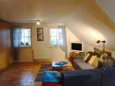 Die Wohnung befindet sich im Obergeschoss, der Küchenbereich ist eingerichtet mit einem Ceranfeld, Kühlschrank, Mikrowelle, Kaffeemaschine, Wasserkocher, und Toaster. Am kleinen Flur angrenzend ist das Bad mit Dusche und WC. Im Wohnzimmer befindet sich ein praktisches...
