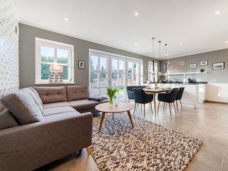 Ein großer Wohn- und Essbereich mit einer umfangreich ausgestatteten Küche bildet den Mittelpunkt vom "Haus Okke" - hier kommt man zusammen!