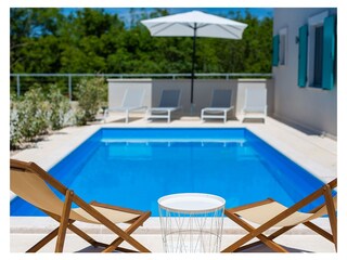 Wir haben unseren Familienurlaub in diesem sehr schönen und sehr gepflegten Ferienhaus verbringen dürfen. Das Haus lässt keine Wünsche offen. Jedes Schlafzimmer verfügt über ein eigenes Bad. Das offen gestaltete Wohnzimmer mit Küche lädt zum Verweilen ein. Die Einrichtung ist sehr modern gehalten. Die warmen Außentemperaturen sind aufgrund der Klimaanlagen in jedem Zimmer gut auszuhalten. Der Pool hat eine angenehme Größe für viel Badespaß. Auch eine Waschmaschine sowie Außendusche stehen zur Verfügung. Die Einfahrt bietet ausreichend Platz für mehrere Fahrzeuge. Das Tor zum Grundstück wird per Fernbedienung geöffnet.