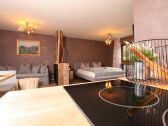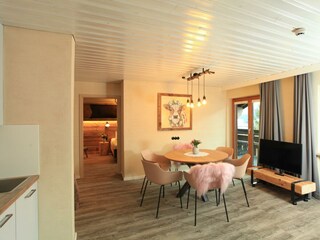 Die Ferienwohnung DELUXE "Bergsteiger" bis max. 6 Pers. überzeugt im elegantem modernem alpinem Stil. Der attraktive große Wohnraum ladet mit einer komfortablen runden Sitzessecke,Schlafcouch und einer voll ausgestatteten Küche mit Ceranfeld und Spülmaschine,Schlafraum mit hochwertigem Doppelbett,1...