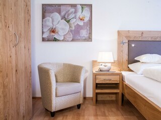 Neu renovierte Ferienwohnung für 2 Personen im alpinen Stil mit 1 Schlafzimmer, Bad mit Dusche und Badewanne und separater Toilette, einem gemütlichen Wohnraum mit Sitzgruppe und Kachelofen, komplett ausgestatteter Küche sowie Terrasse mit kleinem Garten.