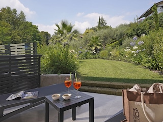 Das Solarium mit Infinity-Pool ermöglicht es Ihnen, sich einige Tage völlig zu entspannen, indem Sie gleichzeitig den unvergleichlichen Blick auf den See und insbesondere die angrenzende Isola del Garda genießen.