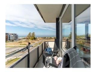 Willkommen im Urlaub - mit Mee(h)rblick! Die gemütliche 38 m²-Wohnung befindet sich in der dritten Etage und ist per Aufzug zu erreichen. Genießen Sie den herrlichen Rundumblick vom Wohnzimmer und Balkon (Nord-Ost) zur Ostsee und zum Binnensee....