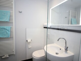 Die Wohnung verfügt über ein Eingangsflur, ein Duschbad, eine voll ausgestattete separate Kochküche mit Spülmaschine, 4 Kochplatten Ceranfeld, Spülmaschine, Mikrowelle etc. , ein Doppelschlafraum ein großes Wohnzimmer mit Sitzgruppe, ein Duschbad, Esstischgruppe, LED TV und...