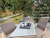 Entspannen Sie sich auf einem möblierten Balkon und genießen Sie eine voll ausgestattete Küchenzeile.