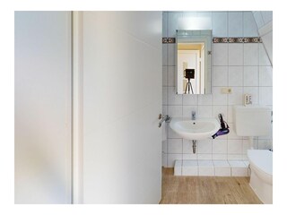 Die Wohnung verfügt über ein Schlafzimmer mit Doppelbett, ein helles Badezimmer mit Dusche,...