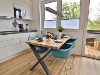 Genießen Sie eine voll ausgestattete Küche, kostenloses Netflix und einen gemütlichen Balkon.