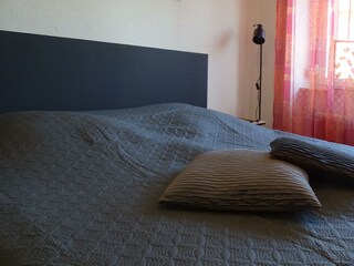 Genießen Sie ein gemütliches Wohnzimmer und ein Doppelzimmer, ideal für kleine Familien.