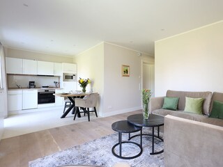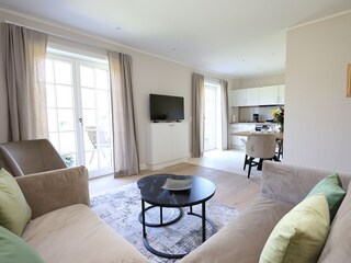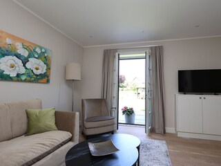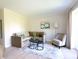 Die Wohnung im EG verfügt über ein Wohnzimmer mit LED TV, Ecksitzgruppe, Zugang zur Terrasse mit Gartenmöbel, eine voll ausgestattete Küchenzeile mit Esstischgruppe, 4 Platten Ceranfeld, Backofen, Mikrowelle, Spülmaschine etc., ebenfalls ein Zugang zur Terrasse, ein...
