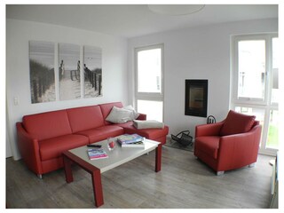 Unsere Wohnung befindet sich im ersten Obergeschoss auf der Meerseite und ist bequem über den Fahrstuhl zu erreichen.