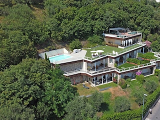 Genießen Sie den gemeinsamen Swimmingpool und die Sonnenterrasse mit atemberaubendem Blick auf den See.