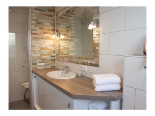 Die Ferienwohnung Backbord verfügt über zwei getrennte Schlafzimmer im 1. OG ,davon ist ein Schlafzimmer mit Außenrolläden und SAT- TV ausgestattet .Außerdem befindet sich im 1. OG ein zusätzliches WC. Das moderne Bad /...