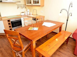 Wohnung 2: Dieses gemütliche 3-Raum-Appartement im 1. Obergeschoss des Hauses ist im bernsteinfarbenen Landhausstil eingerichtet und hat eine Wohnfläche von ca. 70 m² sowie einen großen möblierten Balkon (ca. 9 m²) zur sonnigen Südseite.Über einen Flur...